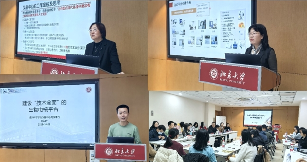 交流会由实验室与设备管理部副部长钟灿涛主持。会议邀请生命科学学院公共仪器中心三位技术专家作经验分享。中心副主任郝雪梅全面介绍了仪器中心的发展历程、管理模式与服务理念,立足实验技术支撑职能,围绕科技创新服务优化、国产技术设备应用支持、专业技术队伍培育建设等方向,分享实践经验和思考感悟。流式平台主管吕红霞介绍了平台在仪器性能优化、实验方案设计与数据分析等方面所做的系统性探索与技术创新,强调课题沟通与全过程服务在保障数据质量中的关键作用。电镜平台主管刘轶群分享了生物电镜技术在样品制备等方面的突破与应用案例,并强调,平台已建立起电镜三维成像技术的全过程服务体系,能够根据用户科研问题定制解决方案,助力多项高水平科学研究成果落地。